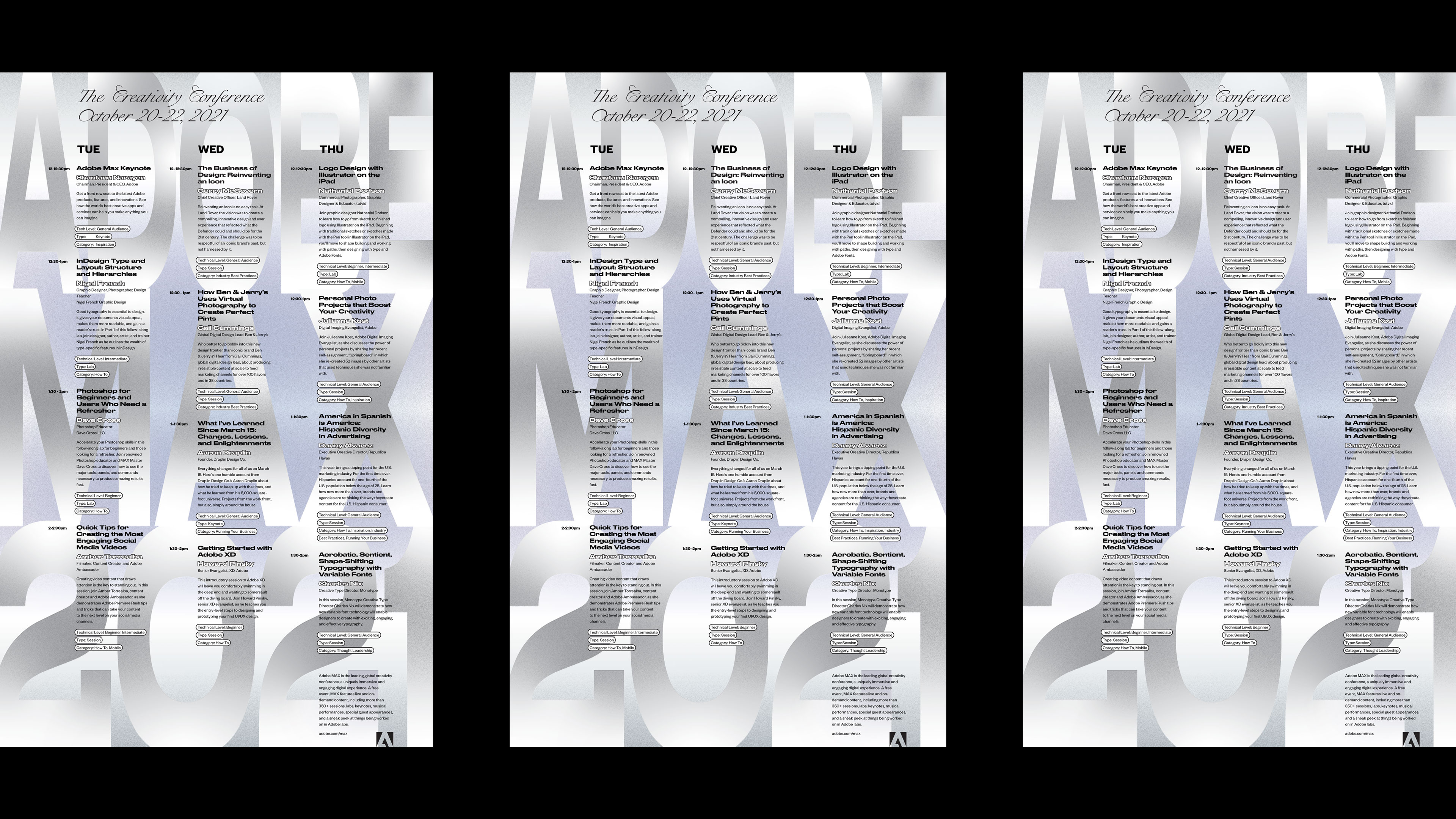 An event calendar showcasing the highlights of Adobe MAX 2021 conference.