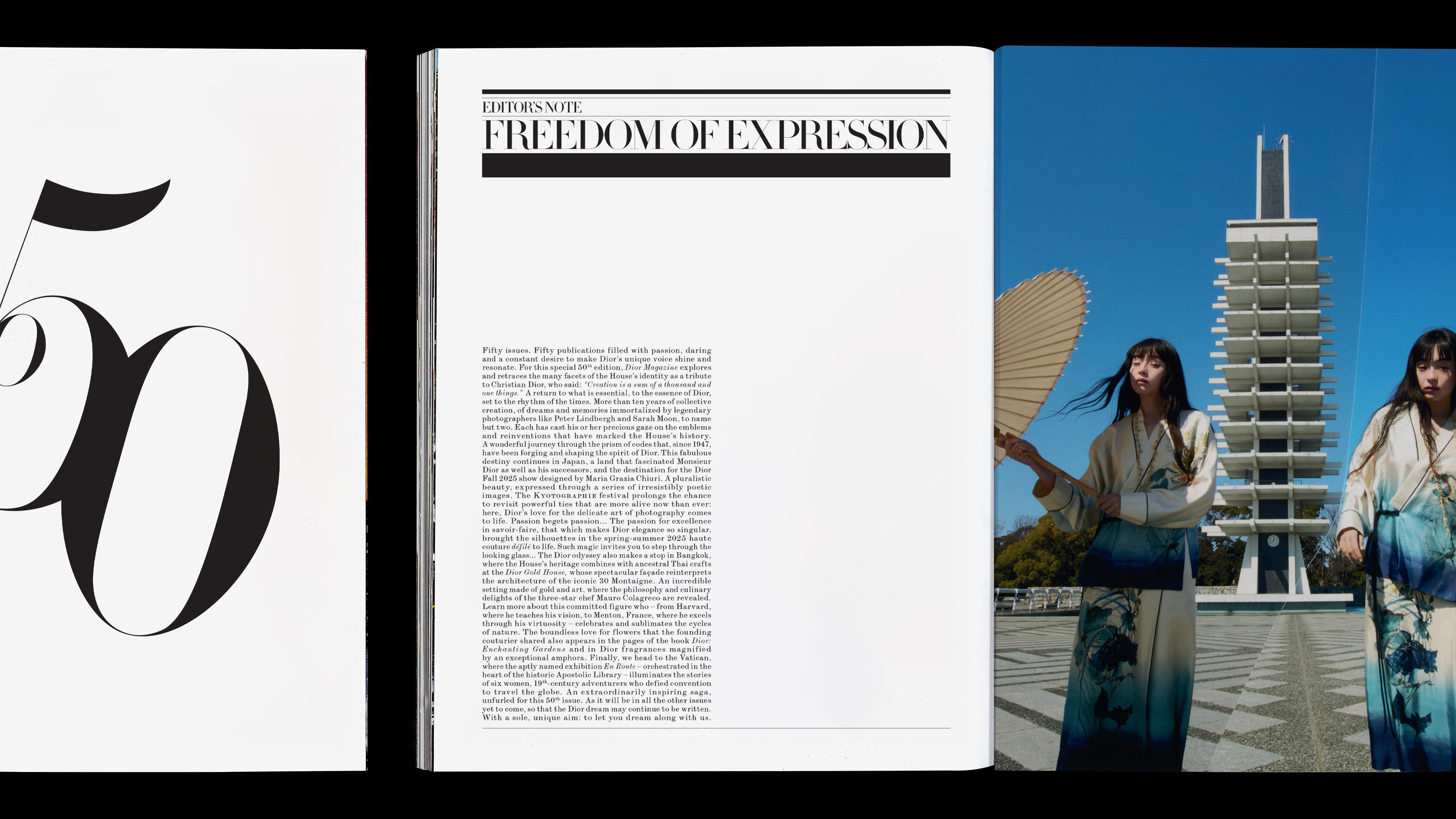 The fiftieth issue of Dior Magazine explores what defines the House today: its people, craftsmanship, and the dialogue between tradition and reinvention. Working within the magazine’s existing design system, I designed the publication and adapted it to fit the content and themes of this milestone edition. I also animated Szilveszter Mako theatrical, painterly photographs, which appears on